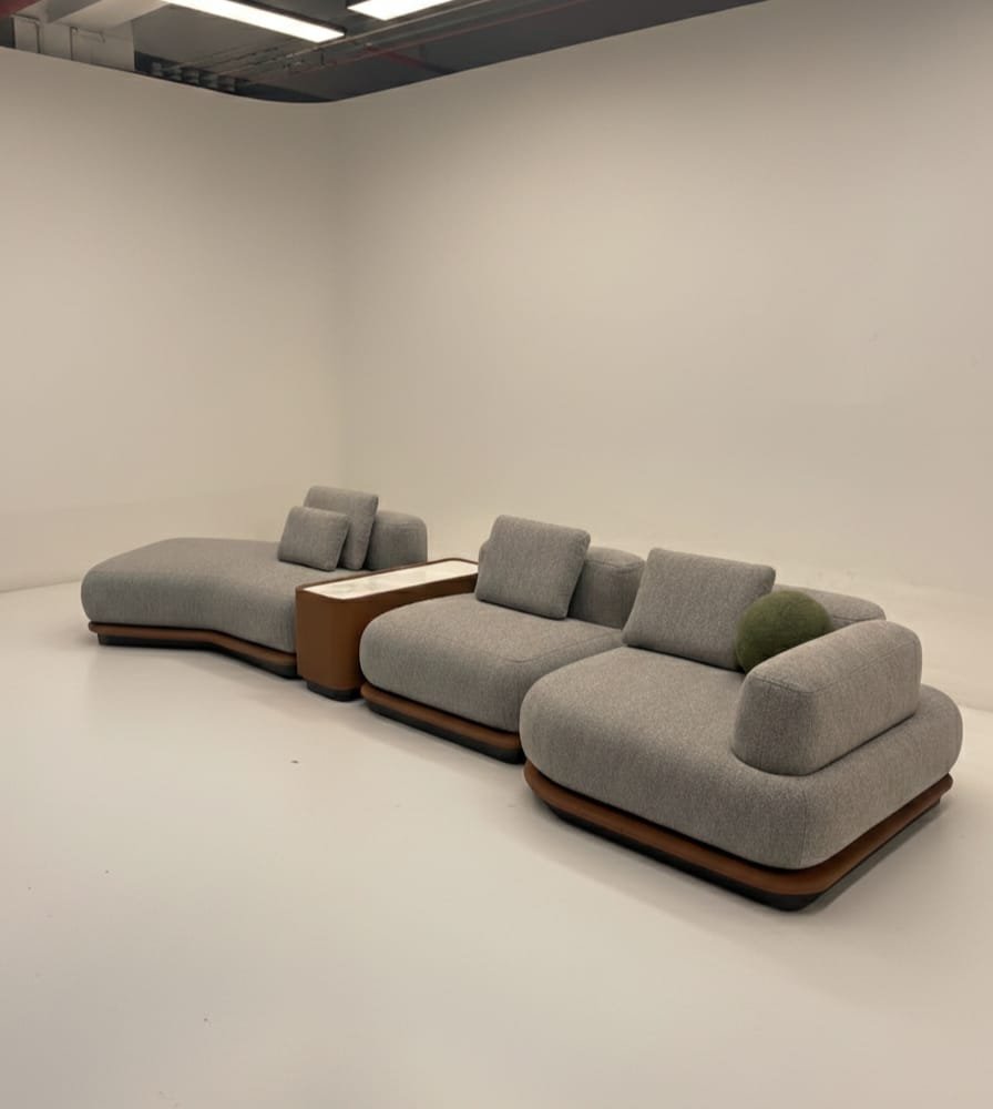 تتميز هذه الركنة بتصميمها المودولار (Modular Design) الذي يتيح لك إعادة تشكيلها لتناسب مساحتك الشخصية، مع تداخل جريء للخامات حيث تجمع بين قماش البوكليه الرمادي الفاخر، والجلد الطبيعي في الطاولة المدمجة، وسطح من الرخام الأبيض العاكس للفخامة. صُممت لتكون قلب غرفتك العصرية وتوفر لك تجربة جلوس فندقية في منزلك.